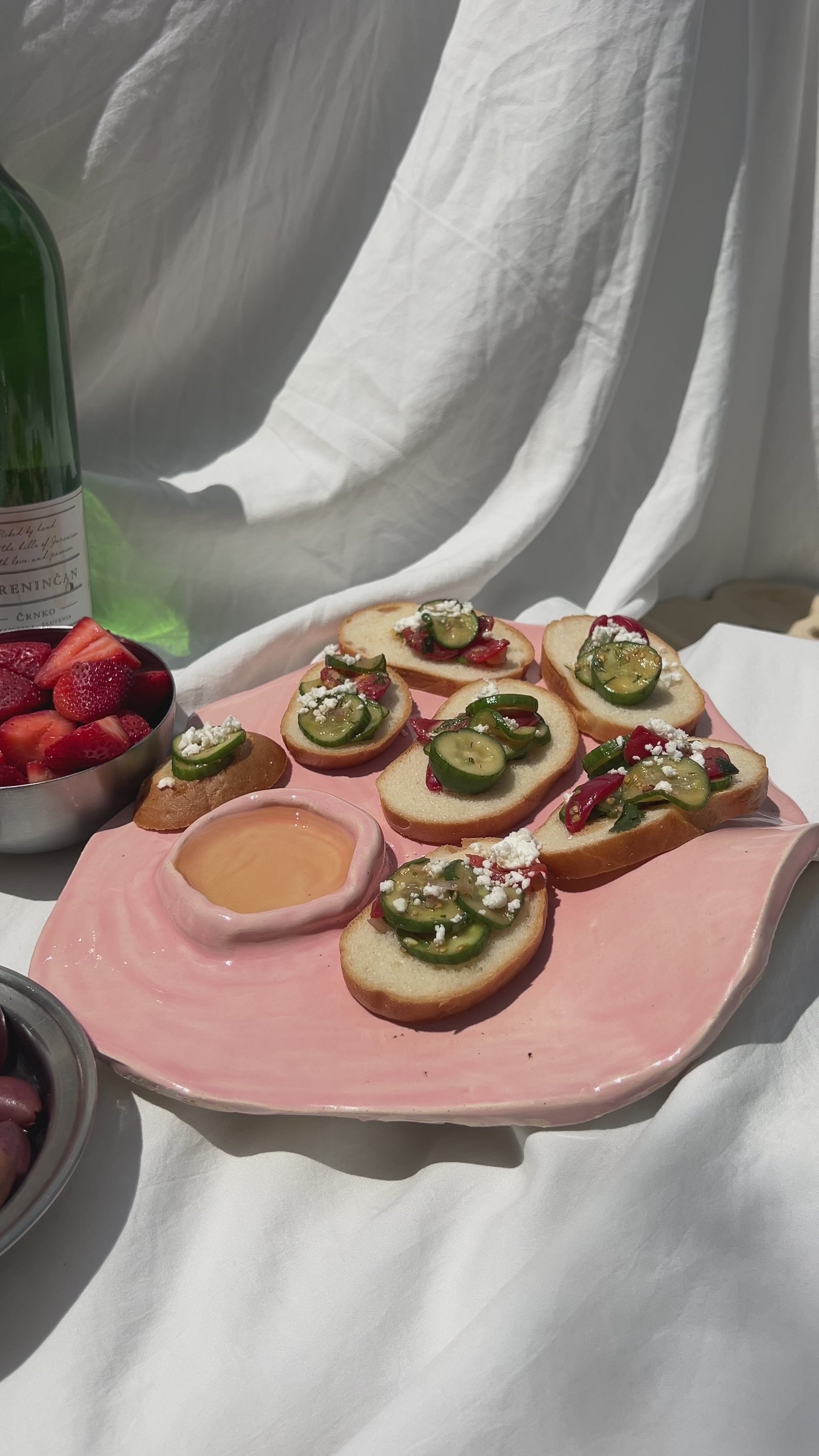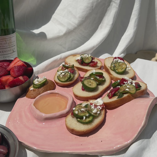 Our glossy pretty pink Charcuterie board.